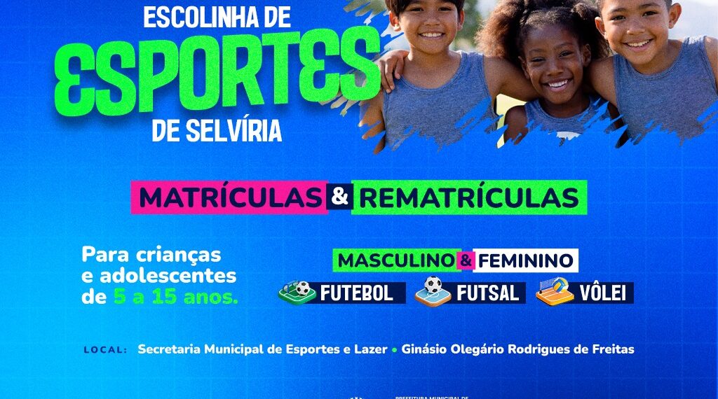 A Prefeitura de Selvíria, por meio da Secretaria Municipal de Esportes e Lazer, está com matrículas abertas para as escolinhas...
