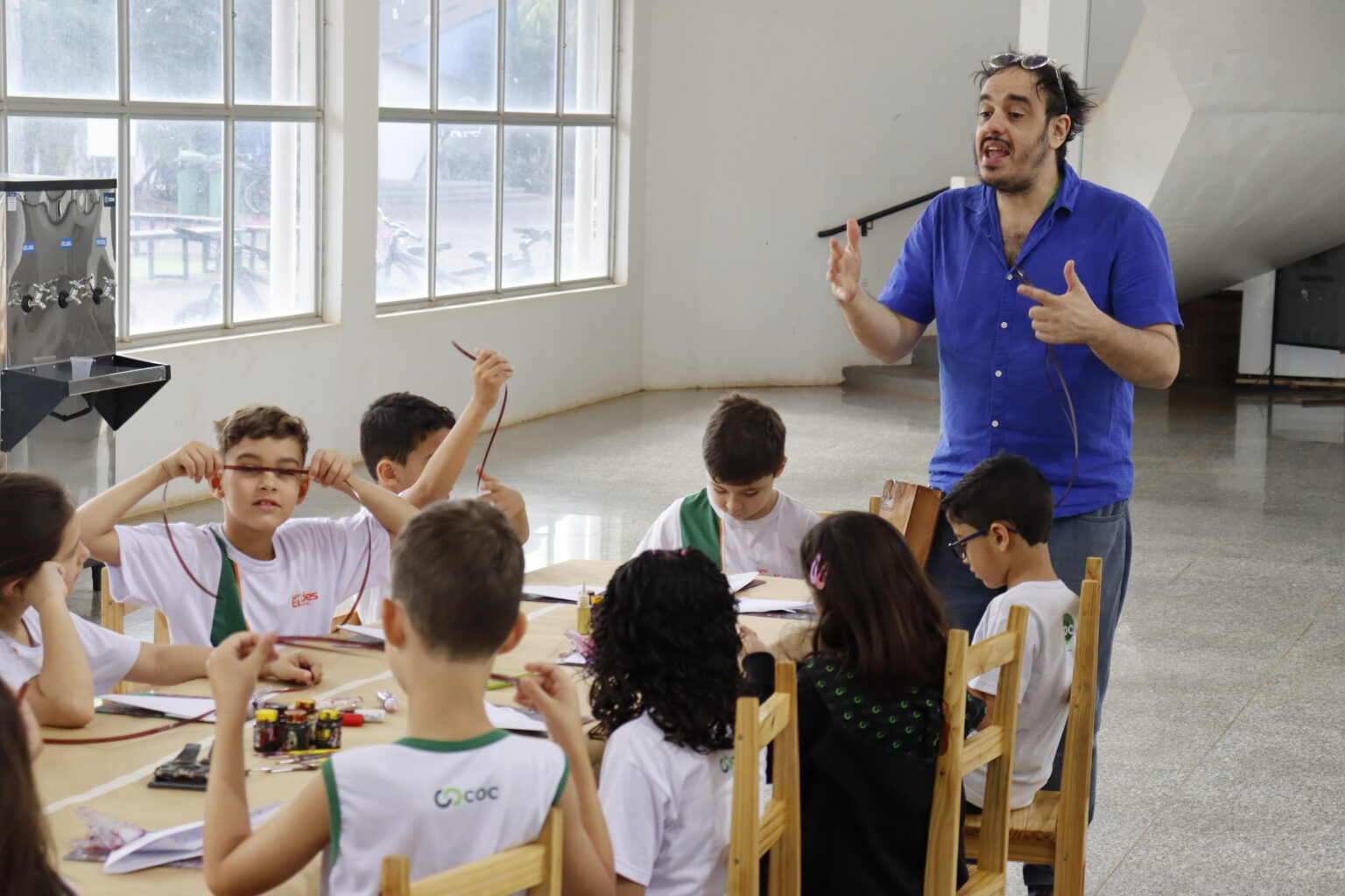 A atividade promoveu experimentações lúdicas com materiais do mundo do filme analógico, como a película super8mm. A oficina partiu de brincadeiras e jogos sensoriais para levar os participantes a descobrirem como criar um filme feito de cores e muita diversão. Alunos do colégio Euclides da Cunha participaram da oficina.