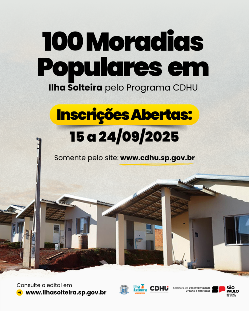 Nesta segunda-feira, 15, serão abertas as inscrições para o empreendimento habitacional Ilha Solteira-D, que contará com 100 unidades populares destinadas a famílias de baixa renda. Trata-se de uma ação da Companhia de Desenvolvimento Habitacional e Urbano do Estado de São Paulo (CDHU), em parceria com a Prefeitura de Ilha Solteira.